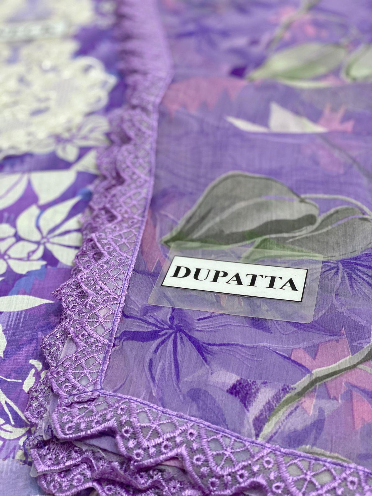 • Chiffon Printed Dupatta With 4 Sided Embroidered Laced
