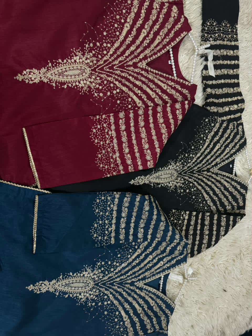 Eid Arrivle Sequins Embroidery Rawsilk Suit with Organza Dupatta | Branded Stitched Dress For Girl's