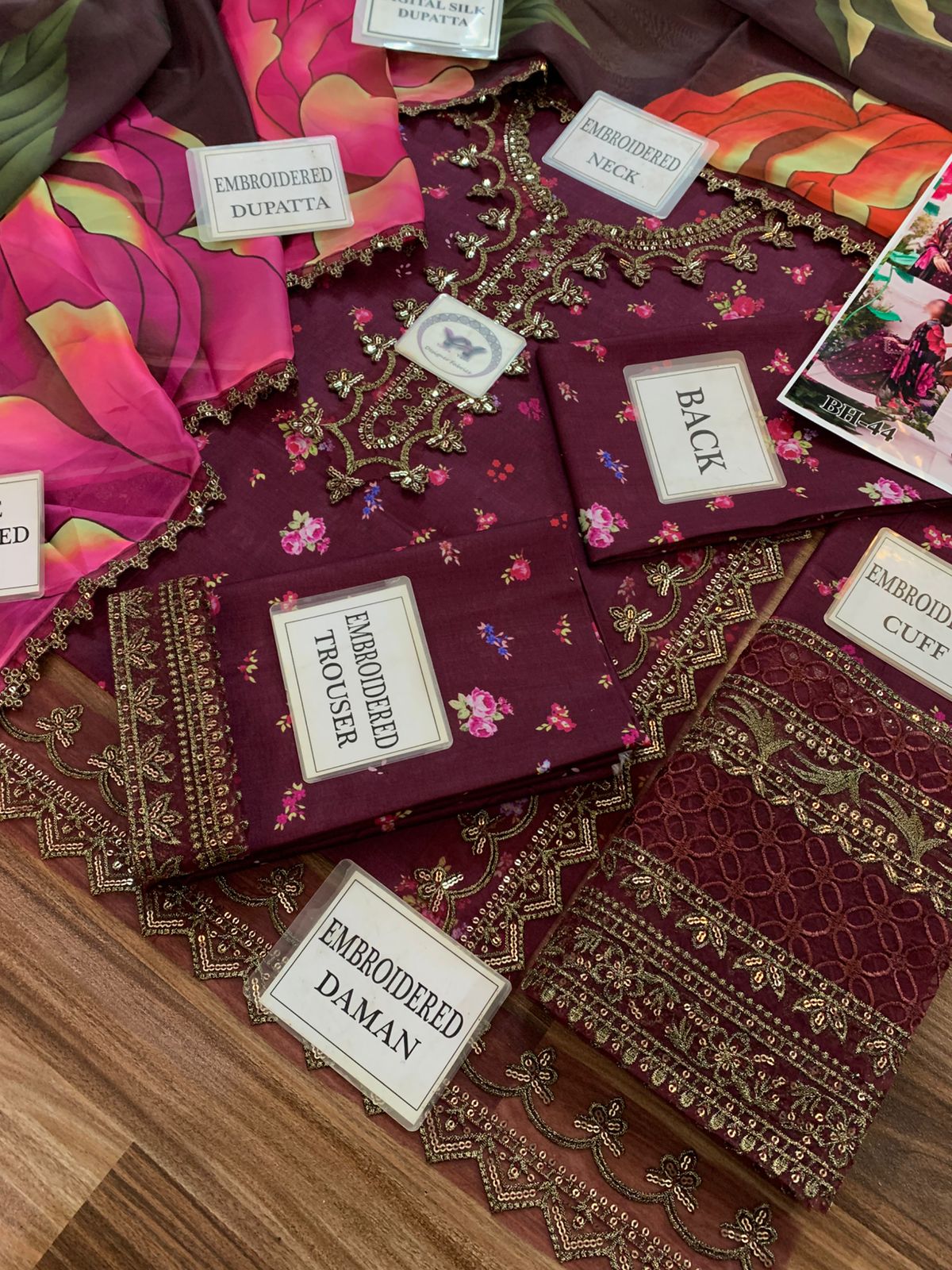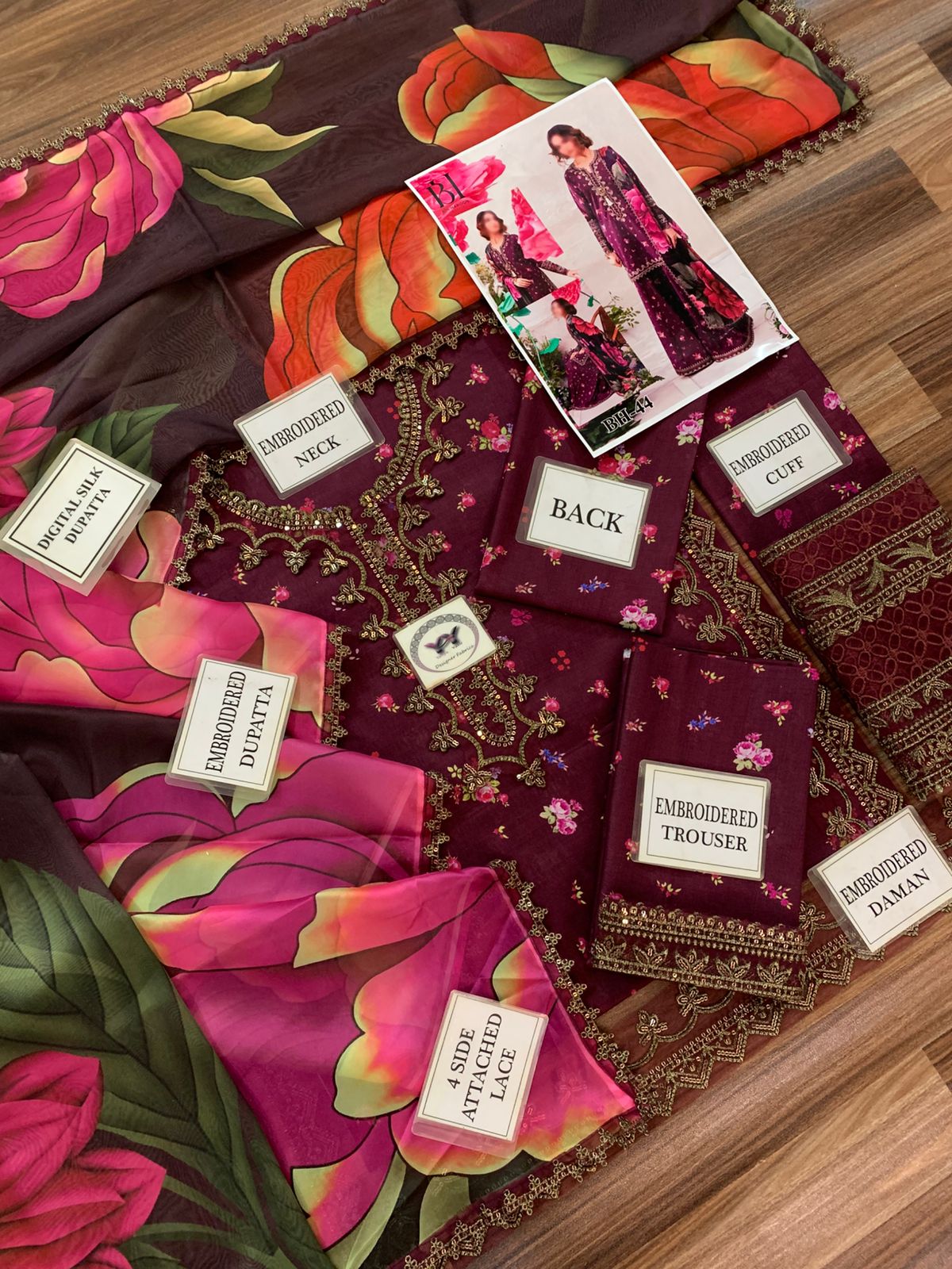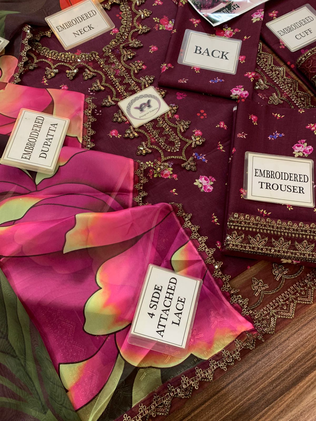 Printed Lawn With Embroidered Neck and Embroidery Organza Choke and Daman