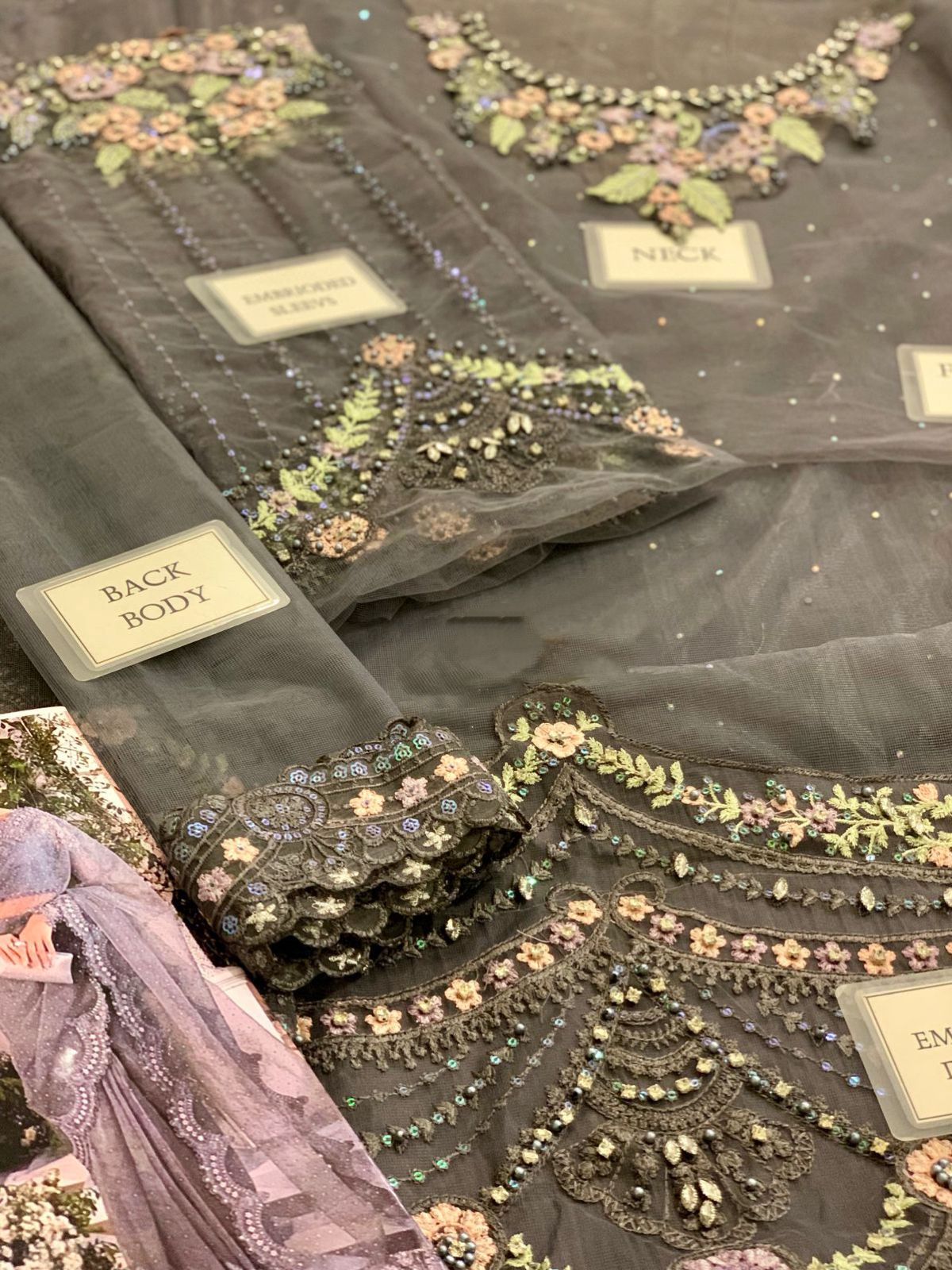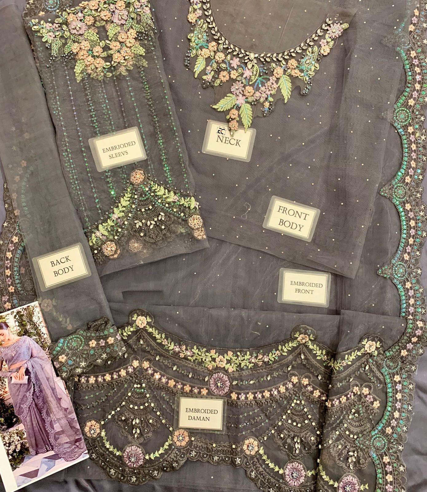 *net fully hand emblishment spary stone front body with heavy embroidered spengle work neckline with fully hand emblishment adha work*