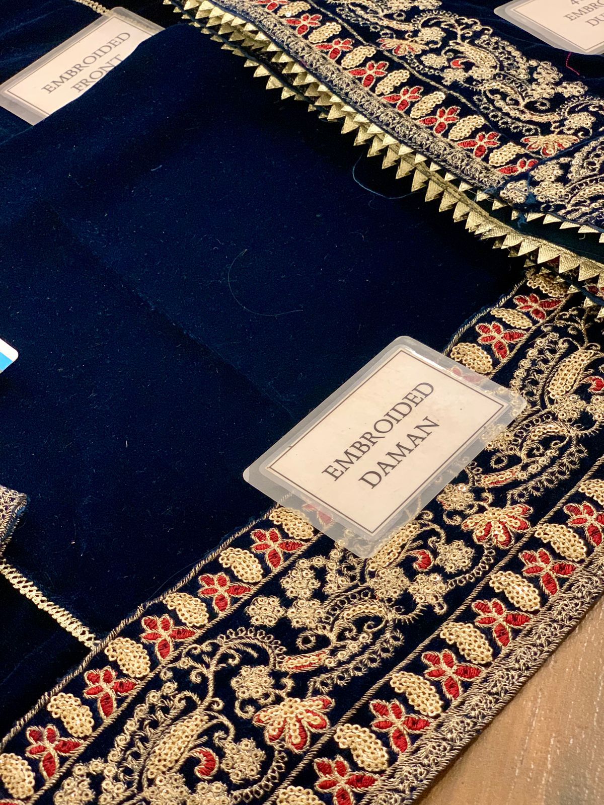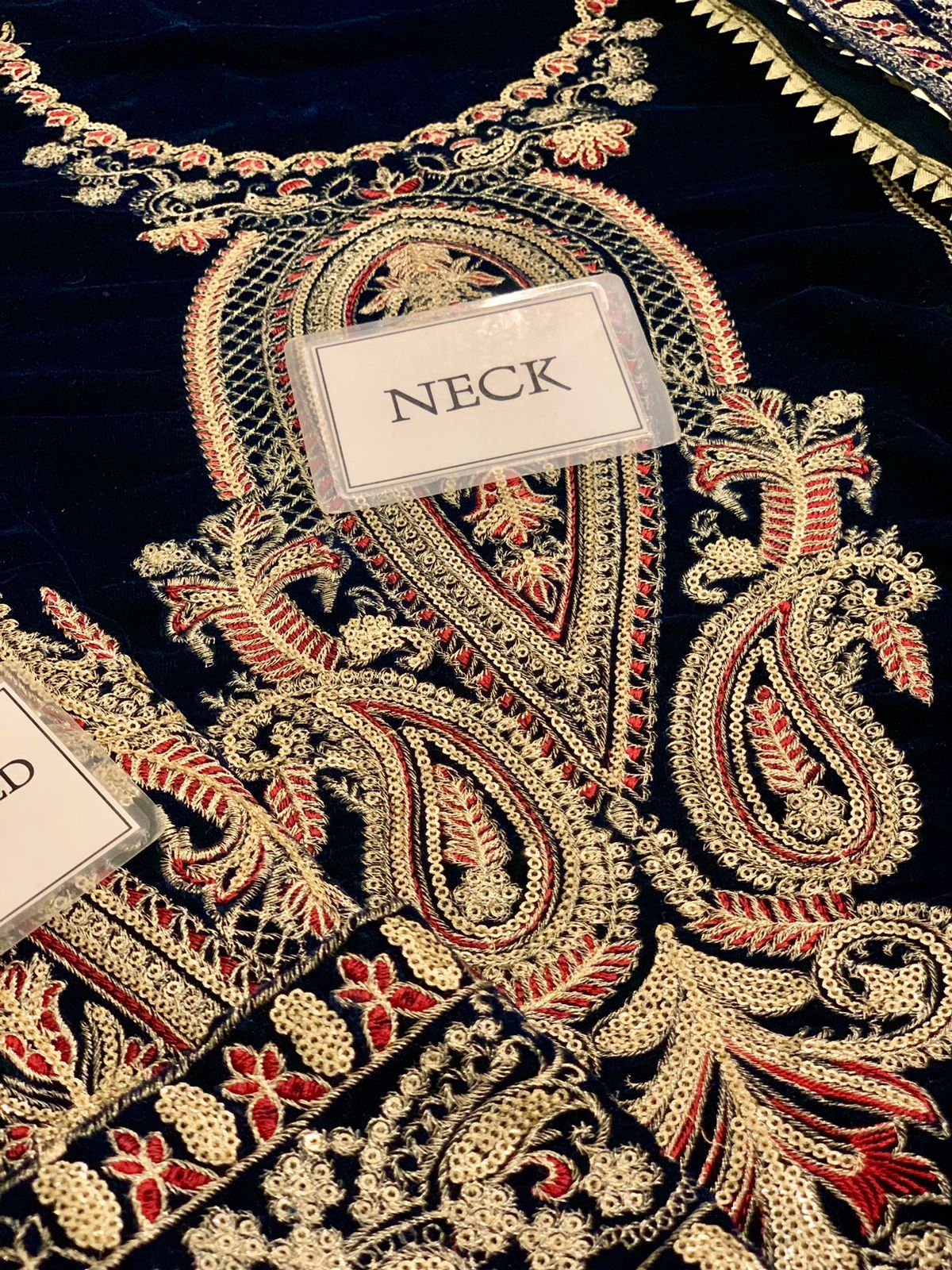*VELVET fully heavy embroidered spengle work centre panel front with fully embroidered spengle work left & right panel attach with embroidered spengle work daman boarder*