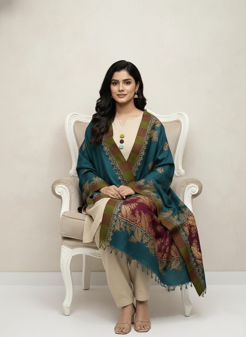 Heavy 3D AllOver Self Jacquard Design Full Size Shawl